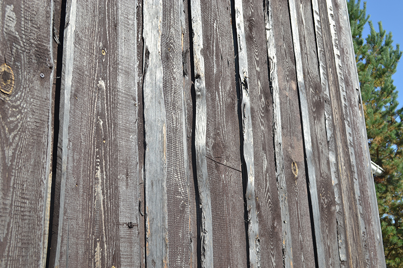 The wood has a unique, aged, and rustic appearance from decades of exposure to the elements.